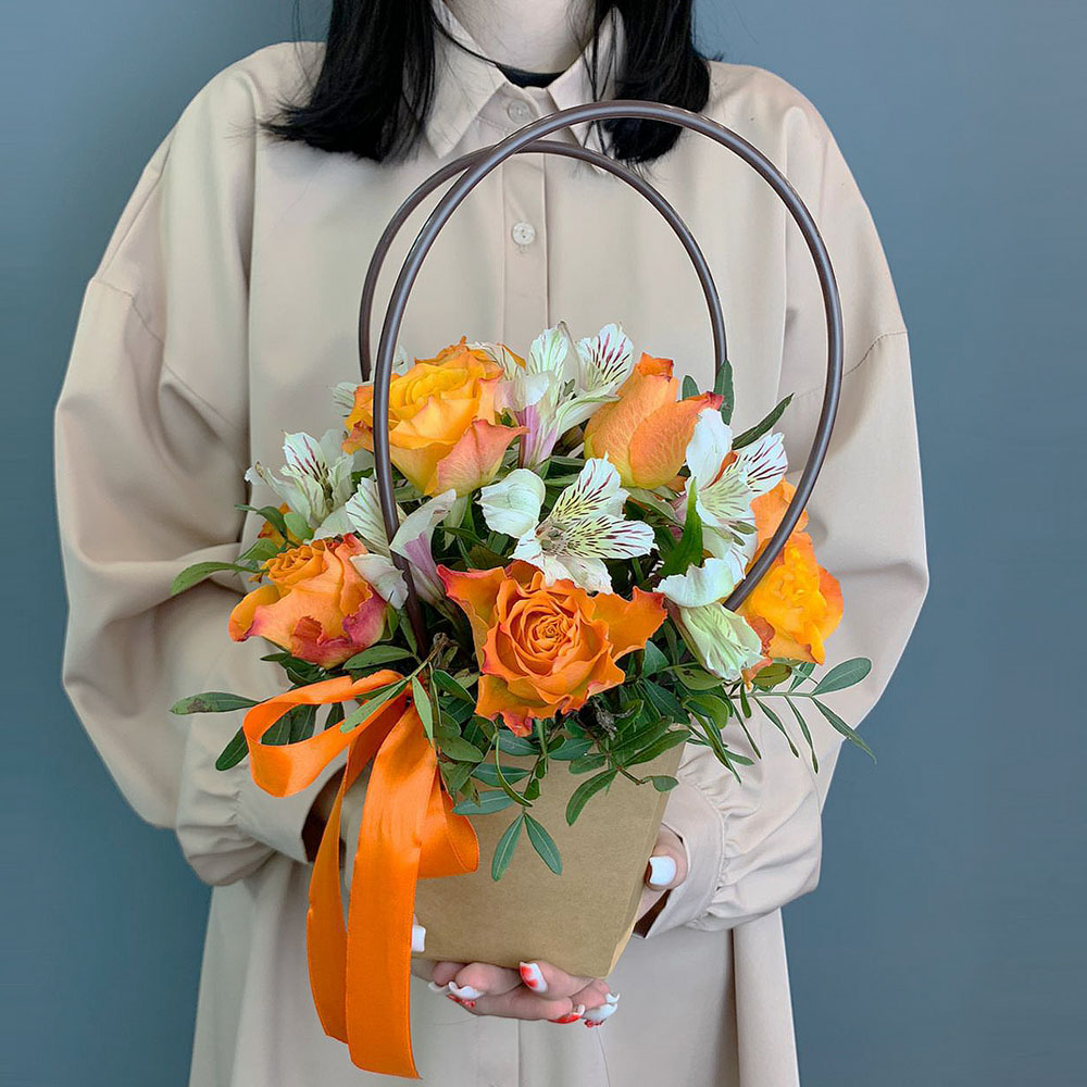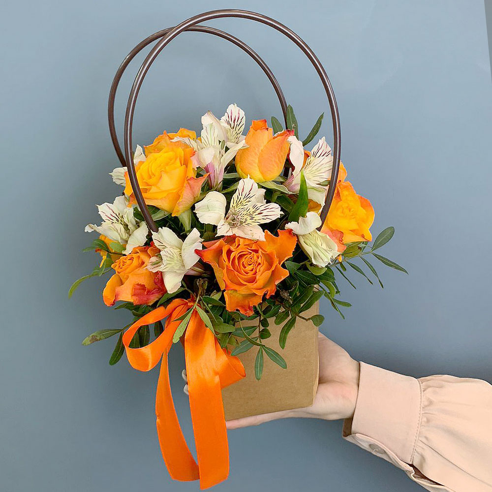Сумочка с оранжевыми розами Кения и альстромерией арт. 66996-Р
